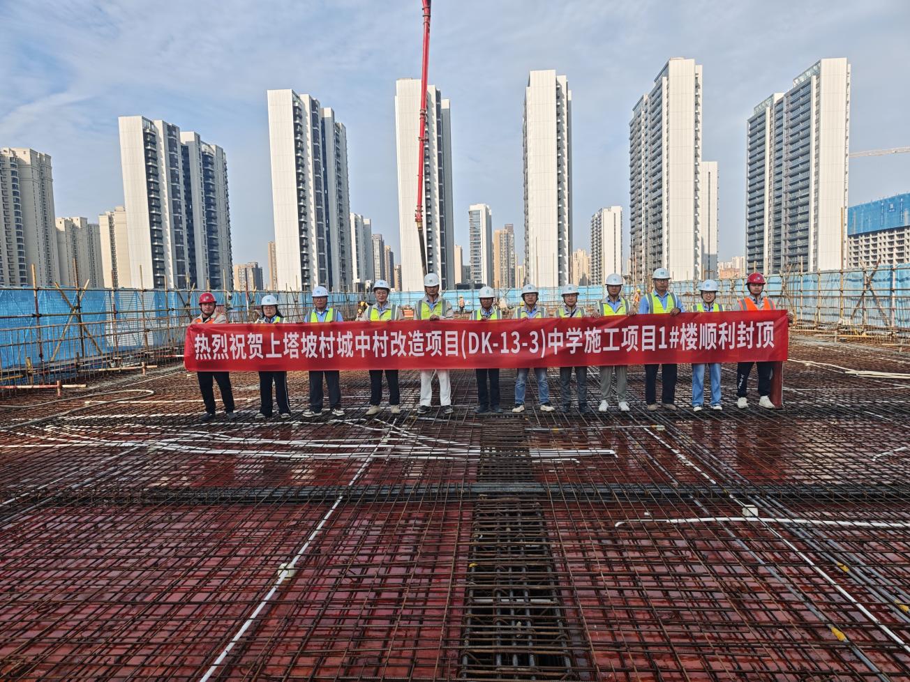 持守匠心铸精品,恪守诚信树典范。2025年9月29日,上塔坡村城中村改造项目配建中学(DK-13-3)首栋楼主体结构封顶,标志着项目建设阶段性任务圆满完成,为实现如期交付迈出了坚实一步。