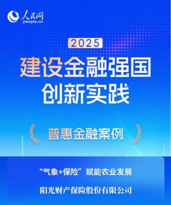 近日,人民网2025建设金融强国创新实践案例名单公布,“2025建设金融强国创新实践案例库”同步上线。阳光财险选送的特色服务案例“‘气象+保险’赋能农业发展”成功入选案例库“普惠金融”篇章。